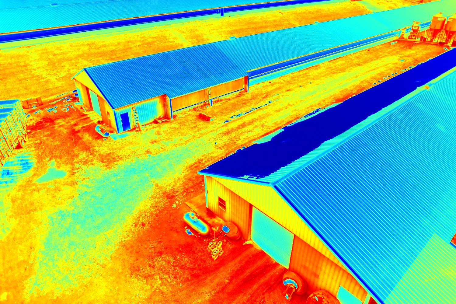 The InfraLytiks Solution was to use a drone equipped with a highly accurate IR Thermal Camera/HD cameral to fly the roof at sunset. The thermal sensor was able to detect thermal anomalies indicating likely water penetration. The roofing client then drilled core samples to verify the presence of moisture and allow us to calibrate for actual moisture vs. false positives.